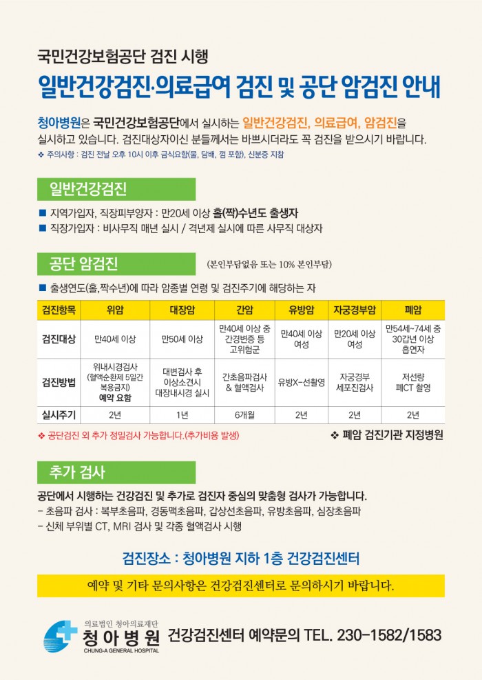 ■ 건강검진 예약 및 문의 : 청아병원 지하1층 건강검진센터 T.230-1592